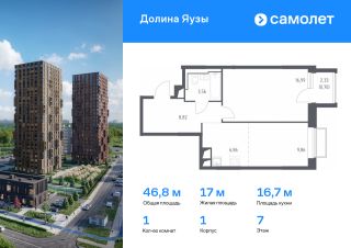 Предлагается 1-комнатная квартира комфорт-класса 46,79 кв.м в корпусе 1 на 7 этаже, в ЖК ''Долина Яузы''Квартира с чистовой отделкой. Доступность дополнительных опций уточняйте у застройщика.Приобрести квартиру возможно по специальным акциям от застройщика, с текущими условиями акций можно ознакомиться в блоке Акций.Цена динамическая и может отличаться, уточняйте актуальность у застройщика.Жилой комплекс комфорт-класса ''Долина Яузы'' расположен на северо-востоке Московской области, в 200 м от МКАД. До ж/д станции Перловская или набережной реки Яуза можно дойти за 10 минут. В шаговой доступности находятся детские сады, школы, стоматология и поликлиника. Есть супермаркеты и кофейни, детские и спортивные площадки, зоны отдыха под навесом. У каждого дома будет собственный двор-сад, где посадят плодовые и вечнозеленые деревья и кустарники. Территория около жилого комплекса закрыта от машин и посторонних и круглосуточно охраняется. В жилом комплексе ''Долина Яузы'' большой выбор квартир: от однокомнатных до трехкомнатных. Квартиры сдаются с готовой отделкой или без нее.