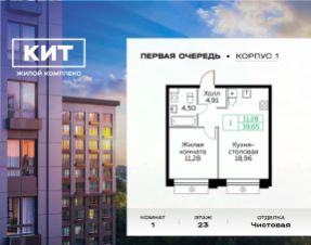 Дом сдан. Выдаем ключи!Продаётся 1-к квартира 39.7 кв.м. с чистовой отделкой в ЖК ''КИТ'' на 23-м этаже 25 этажного дома.Жилой комплекс ''Кит'' спроектирован в урбанистической концепции ''Город в Городе''. Объект бизнес-класса предлагает рациональный подход к набору опций, необходимых для гармоничной жизни. Проект представляет собой два корпуса, которые образуют единую приватную территорию. Ее доминантой является двор с красивым ландшафтным дизайном и различными зонами, ориентированными на интересы жителей разного возраста. При создании пространства в приоритет ставился комфорт жителей. В шаговой доступности находятся торговый центр, рестораны, кинотеатры, спортивный зал, образовательные учреждения и много других сфер услуг. Преимущества проекта: - Видовые характеристики (просматриваются Москва - Сити и Останкинская телебашня) - Широкая квартирография по всем типам квартир- Увеличенное остекление - 3 варианта отделки: без отделки, white box или чистовая отделка в скандинавском и итальянском стилях - Школа и детский сад рядом - Богатая развлекательная инфраструктура - Высокий уровень безопасности территории Расположение комплекса:- 5 минут пешком до ж/д ''Мытищи'' и автовокзала:- 19 минут до станции м. ''Комсомольская''- 30 минут до станции м. ''Медведково''- 2,2 км до Волковского шоссе- 2,8 км до Ярославского шоссе- 5,7 км до МКАД
