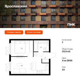 Объект забронирован клиентом!Продаётся 1-комн. квартира площадью 32,6 кв.м на 23 этаже 25 этажного дома (Корпус 16.4, Секция 4) проекта ПИК Ярославский. Светлый просторный подъезд на уровне земли, функциональная планировка, большие окна, c отделкой. Жилой район ''Ярославский'' находится в Мытищах, в шести километрах от МКАД. В 15 минутах на автобусе - платформа Мытищи, а в 20 минутах - метро ''Медведково''. В ''Ярославском'' заселены 25 жилых домов, открыты четыре детских сада, поликлиника, три школы, в том числе одна из самых больших в Московской области. Работает спортивная школа с инклюзивным образованием. Скоро будет построен детский сад на 300 малышей и пешеходный бульвар. Кроме того, на территории проекта появится уникальная игровая площадка - PlayHub ''Акведук''. Гулять здесь одинаково понравится как детям разного возраста, так и мамам с колясками. Главные объекты на площадке - двухуровневые игровые акведуки с башней, горками, песочницей и лазилками. Вокруг ''Ярославского'' четыре лесопарка, поблизости благоустроенная набережная реки Яузы и Рупасовские пруды. Мытищи - развитый город рядом с Москвой: здесь хорошая экономическая ситуация, несколько научно-исследовательских институтов, есть крупные промышленные предприятия. Артикул 909255 (Застройщик ООО ''Загородная усадьба'')