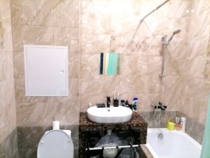 Продается просторная уютная евродвушка в ЖК ''Новое Медведково''.Квартира находится на 14 этаже (из 16). Общая площадь с учетом лоджии - 52,3 кв. м.,общая площадь без учета лоджии - 48.2 кв. м., жилая площадь - 18.7 кв. м. Комнаты светлые большие, пол - ламинат 33 класса, заменены все окна на Rehau (в т.ч. и лоджия), натяжной потолок по всей квартире. В квартире две сплит-системы - Haier и Electrolux. Санузел - совмещенный полностью в плитке. Кухня-гостиная - 18.7 кв. м. Из кухни имеется выход на застекленную лоджию. Кухонный гарнитур (пр-во ''Стильные кухни'') остается со встроенной техникой. Фартук - керамогранит (мозаика). Посудомойка, индукционная варочная панель, вытяжка, духовой шкаф и холодильник - все пр-во компании BOSCH. Кухня - egger с доводчиками и комплектующими немецкой фирмы blum, с бесконтактным выключателем подсветки. Мойка Blanco. Пол на кухне плитка керамогранит + ламинат 33 класса.Коридор плитка керамогранит - 6,5 кв. м. Большой шкаф-купе ширина 2,2 / высота 2,6. Квартира в отличном жилом состоянии, заходи и живи, ремонта не требует!!!! Мебель и техника обговариваются, могут оставить все. На всю холодную воду установлен магистральный фильтр ''Викинг''. На питьевую воду на кухне установлен дополнительный фильтр многоступенчатой очистки ''Аквафор''. Очень приятные соседи. Тамбур на 3 квартиры, закрывается на ключ. На этаже 6 квартир. 2 лифта OTIS - пассажирский и грузовой. Развитая инфраструктура: магазины формата ''у дома'', сетевые магазины, аптеки, кафе, пекарни, салоны красоты, рядом с домом много современных детских и спортивных площадок. Есть лингвистическая гимназия, детские сады, медицинский и спортивный центр. В шаговой доступности магазины Пятерочка, Магнит, АМ, КБ, строительные и хозяйственные магазины, различные кафе, где можно посидеть с семьей или с друзьями. В районе также есть ТРЦ Июнь и Красный Кит, ТЦ 4Daily, магазины ОКЕЙ и ВкусВилл. В пешей доступности великолепный во все сезоны года Мытищинский и Пироговский лесопарки для пеших и велопрогулок, с прокатом лыж зимой. 20 минут езды на автомобиле до Клязьминского водохранилища с яхт-клубом. В городе есть Историко-художественный музей, Картинная галерея с выставками, Мытищинский театр драмы и комедии Фэст. Есть автостоянка. ЖК находится всего в 4 км от МКАД. Удобная транспортная доступность: до Москвы можно доехать по Осташковскому и Ярославскому шоссе, по железной дороге на электричке. До метро Медведково на маршрутке 1172 можно доехать за 20 минут. От дома до ж/д станции Мытищи ходит маршрутка 16 за 10 минут, со станции на электричке до Ярославского вокзала на обычной электричке можно доехать за 35 минут (экспресс за 20 минут). К концу 2024 года планируется открытие МЦД-5.Один взрослый собственник. Альтернатива. Перепланировок нет. Полностью подходит под ипотеку любого банка.