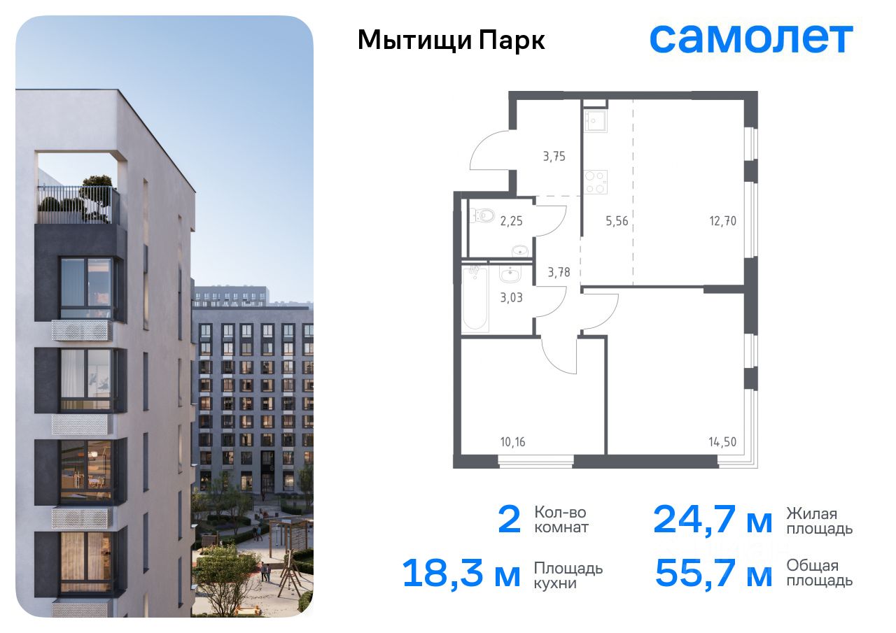 Предлагается 2-комнатная квартира комфорт-класса 55,73 кв.м в корпусе 6 на 4 этаже, в ЖК ''Мытищи Парк'' Квартира с предчистовой отделкой. Доступность дополнительных опций уточняйте у застройщика. Планировкой предусмотрены: Прихожая - 3,75 м² Коридор - 3,78 м² Кухня-ниша - 5,56 м² Жилая_комната_1 - 14,5 м² Жилая_комната_2 - 12,7 м² Жилая_комната_3 - 10,16 м² СУ_1 - 2,25 м² СУ_2 - 3,03 м² Приобрести квартиру возможно по специальным акциям от застройщика, с текущими условиями акций можно ознакомиться в блоке Акций. Цена динамическая и может отличаться, уточняйте актуальность у застройщика. ЖК ''Мытищи Парк'' — это надежные и долговечные монолитные корпуса. При проектировании домов и территории застройщик учел потребности жильцов всех возрастов — молодых пар, семей с детьми и пожилых людей. ЖК ''Мытищи Парк'' расположен в Московской области и с двух сторон окружен Пироговским лесопарком.