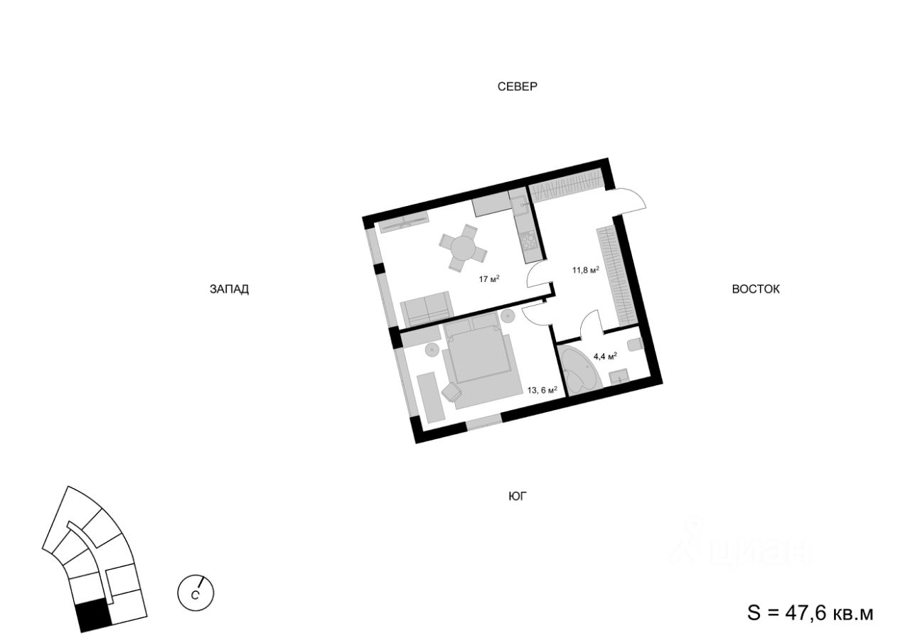 Продаётся 2-комнатная квартира в строящемся доме (Корпус 1), срок сдачи: I-кв. 2026, общей площадью 47.6 кв.м., на 7 этаже. Многоквартирный жилой дом со встроенно-пристроенными нежилыми помещениями и автостоянкой