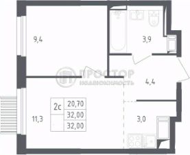 44 м2
