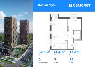 Строим кварталы для жизни с заботой о будущем. Предлагается 2-комнатная квартира комфорт-класса 52,83 кв.м в корпусе 3 на 15 этаже, в ЖК ''Долина Яузы''Квартира с чистовой отделкой. Доступность дополнительных опций уточняйте у застройщика.Приобрести квартиру возможно по специальным акциям от застройщика, с текущими условиями акций можно ознакомиться в блоке ''Акций''.Цена динамическая и может отличаться, уточняйте актуальность у застройщика.Жилой комплекс комфорт-класса ''Долина Яузы'' расположен на северо-востоке Московской области, в 200 м от МКАД. До ж/д станции Перловская или набережной реки Яуза можно дойти за 10 минут. В шаговой доступности находятся детские сады, школы, стоматология и поликлиника. Есть супермаркеты и кофейни, детские и спортивные площадки, зоны отдыха под навесом. У каждого дома будет собственный двор-сад, где посадят плодовые и вечнозеленые деревья и кустарники. Территория около жилого комплекса закрыта от машин и посторонних и круглосуточно охраняется. В жилом комплексе ''Долина Яузы'' большой выбор квартир: от однокомнатных до трехкомнатных. Квартиры сдаются с готовой отделкой или без нее.