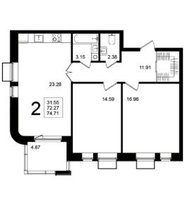 Продаётся 2-комнатная квартира в строящемся доме (Корпус 7), срок сдачи: 1-кв. 2026, общей площадью 74.71 кв.м., на 2 этаже. ЖК ''Мишино-2'' - современный мультиформатный жилой комплекс, который включает в себя многоквартирные дома, таунхаусы и коттеджи, возведенные в едином архитектурном стиле на закрытой территории с собственной инфраструктурой. Комплекс расположен в северной части города Химки и окружен лесопарком.