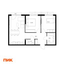 2-к, Яуза Парк ЖК, 12 Показать на карте