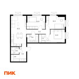 3-к, Яуза Парк ЖК, 12 Показать на карте