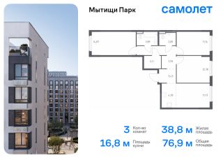 Предлагается 3-комнатная квартира комфорт-класса 76,3 кв.м в корпусе 4 на 3 этаже, в ЖК ''Мытищи Парк''Квартира с чистовой отделкой. Доступность дополнительных опций уточняйте у застройщика.Планировкой предусмотрены:Жилая_комната_1 - 14,1 м²Жилая_комната_2 - 13,5 м²Жилая_комната_3 - 13,4 м²Кухня_1 - 12,5 м²Коридор_1 - 10,6 м²Гардеробная_1 - 4,0 м²СУ_2 - 2,8 м²СУ_1 - 2,4 м²Прихожая_1 - 2,2 м²СУ_3 - 2,1 м²Приобрести квартиру возможно по специальным акциям от застройщика, с текущими условиями акций можно ознакомиться в блоке Акций.Цена динамическая и может отличаться, уточняйте актуальность у застройщика.ЖК ''Мытищи Парк'' — это надежные и долговечные монолитные корпуса. При проектировании домов и территории застройщик учел потребности жильцов всех возрастов — молодых пар, семей с детьми и пожилых людей.ЖК ''Мытищи Парк'' расположен в Московской области и с двух сторон окружен Пироговским лесопарком.