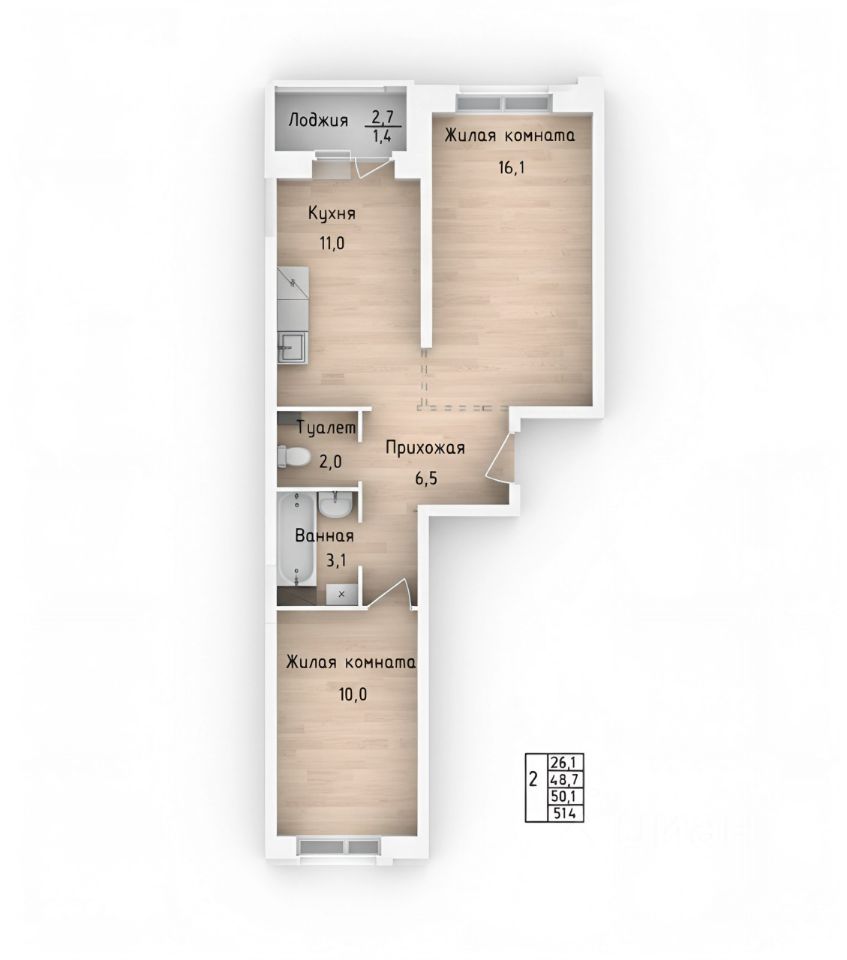 51 м² · Этаж 6 из 14