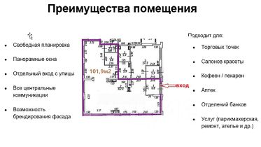 На продажу предлагается готовый арендный бизнес с арендатором.Помещение площадью 106,8 кв.м, находится на первой линии домов, в центре жилого массива, возле помещения остановка общественного транспорта,интенсивный пешеходный и автомобильный трафик вдоль помещения.Витринные окна по фасаду, парковка перед помещением, высота потолков - 3,5 м.Арендатор: Заключен ДДА с супермаркетом ''Около''. МАП - 320 400 рублей.Окупаемость 9,5 лет, доходность 10,5 %Все центральные коммуникации, электрическая мощность 20 кВт. [Лот #22360]