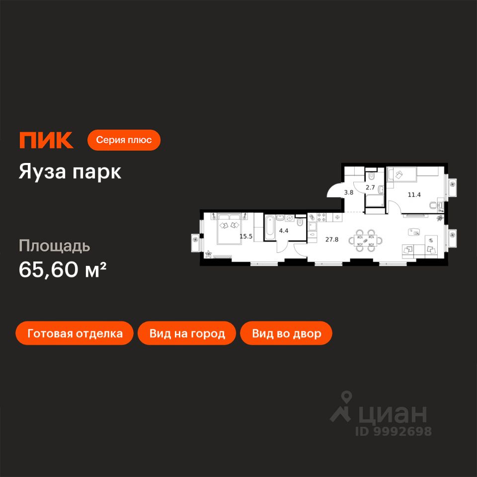 65 м² · Этаж 2 из 15