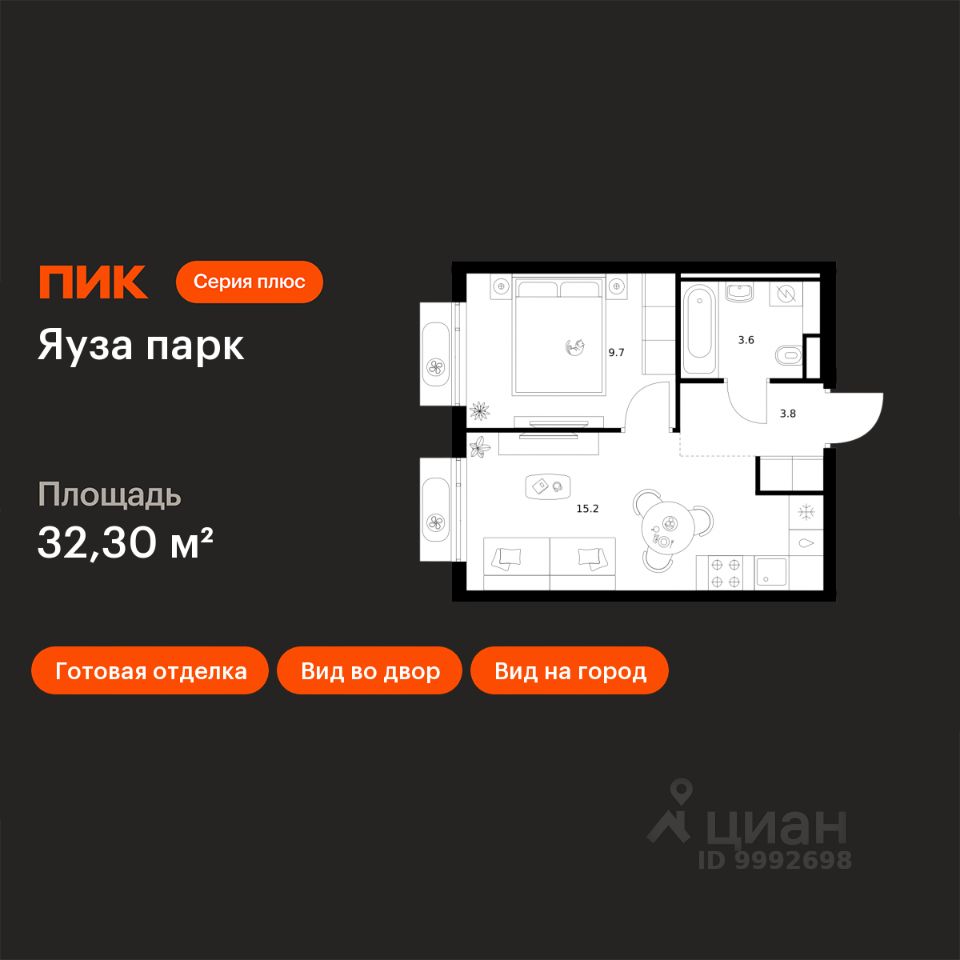 32 м² · Этаж 4 из 15
