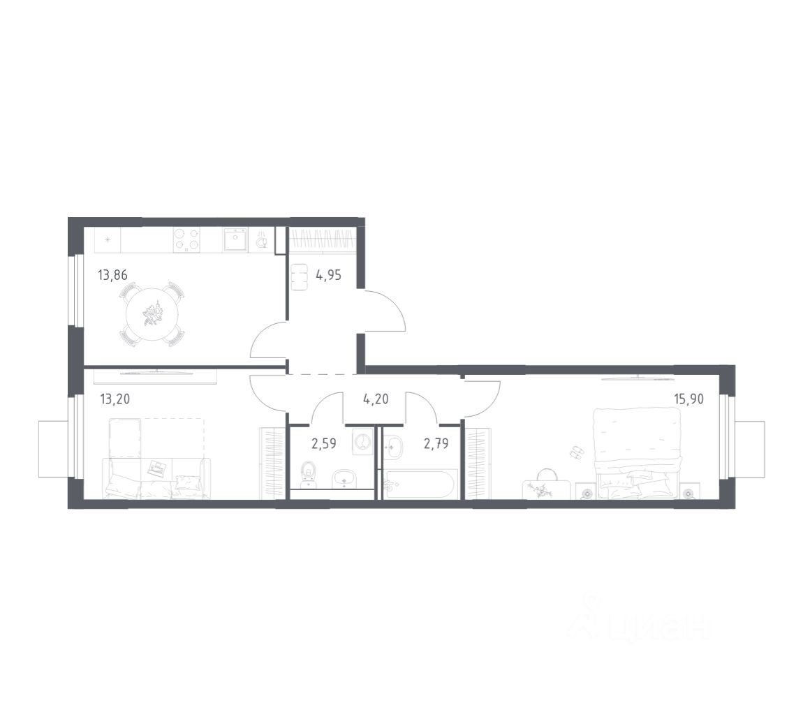 56 м² · Этаж 4 из 24