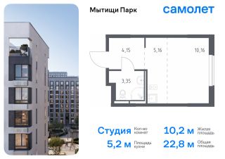 Предлагается квартира студия комфорт-класса 22,82 кв.м в корпусе 6 на 15 этаже, в ЖК ''Мытищи Парк''Квартира без отделки. Доступность опции ''отделка'' и возможность комплектации мебелью и декором уточняйте у застройщика.Планировкой предусмотрены:Прихожая - 4,17 м²Кухня-ниша - 5,1 м²Студия - 10,2 м²СУ_1 - 3,35 м²Приобрести квартиру возможно по специальным акциям от застройщика, с текущими условиями акций можно ознакомиться в блоке Акций.Цена динамическая и может отличаться, уточняйте актуальность у застройщика.ЖК ''Мытищи Парк'' — это надежные и долговечные монолитные корпуса. При проектировании домов и территории застройщик учел потребности жильцов всех возрастов — молодых пар, семей с детьми и пожилых людей.ЖК ''Мытищи Парк'' расположен в Московской области и с двух сторон окружен Пироговским лесопарком.