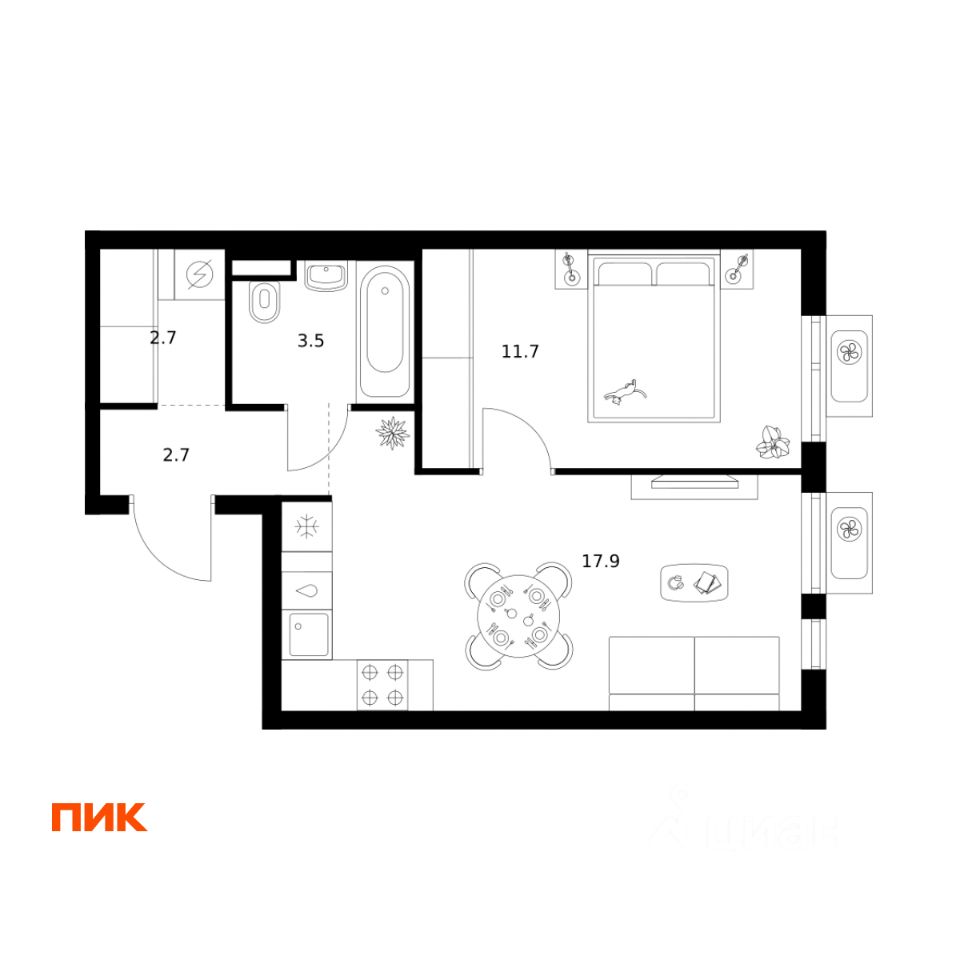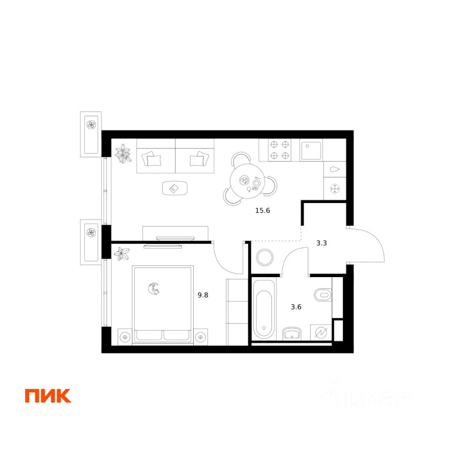 38 м² · Этаж 15 из 25