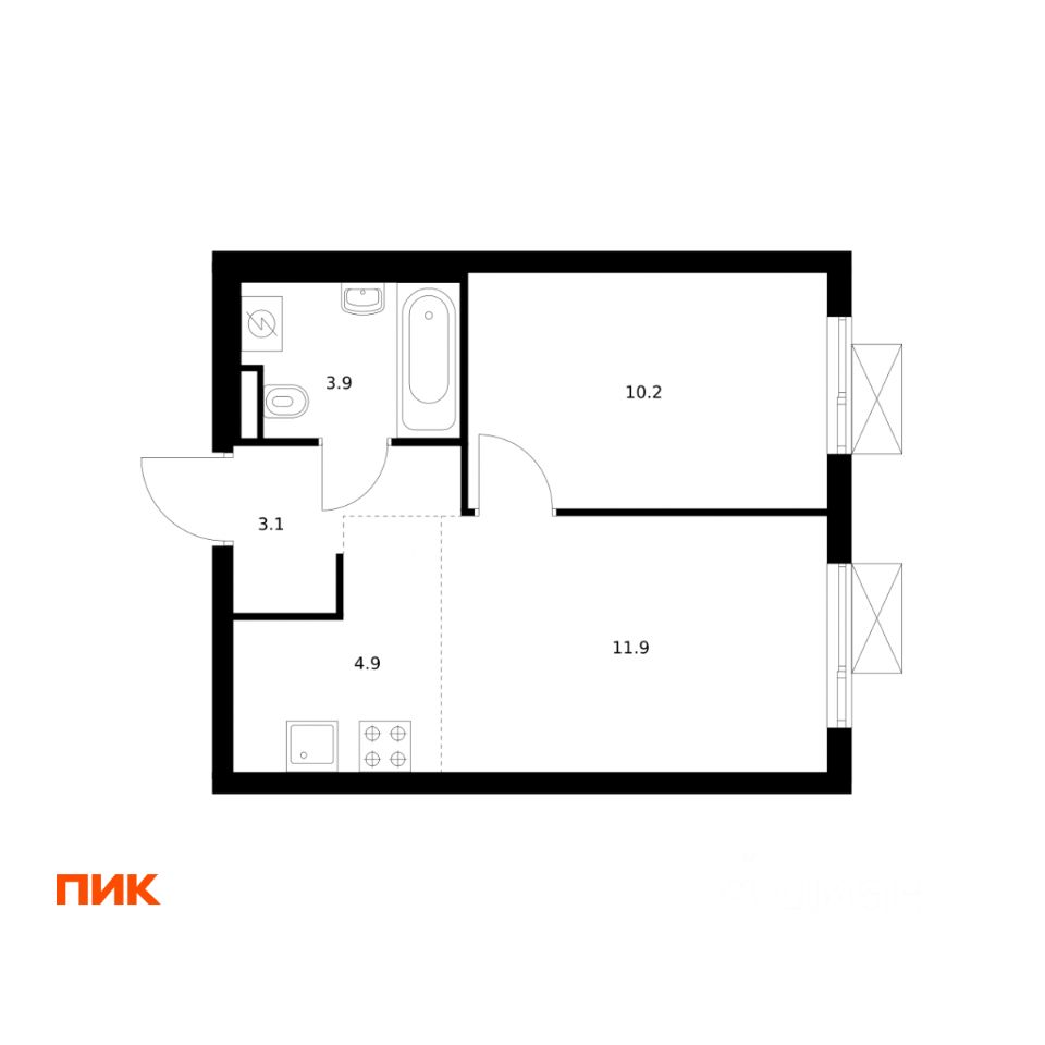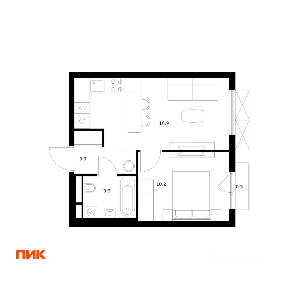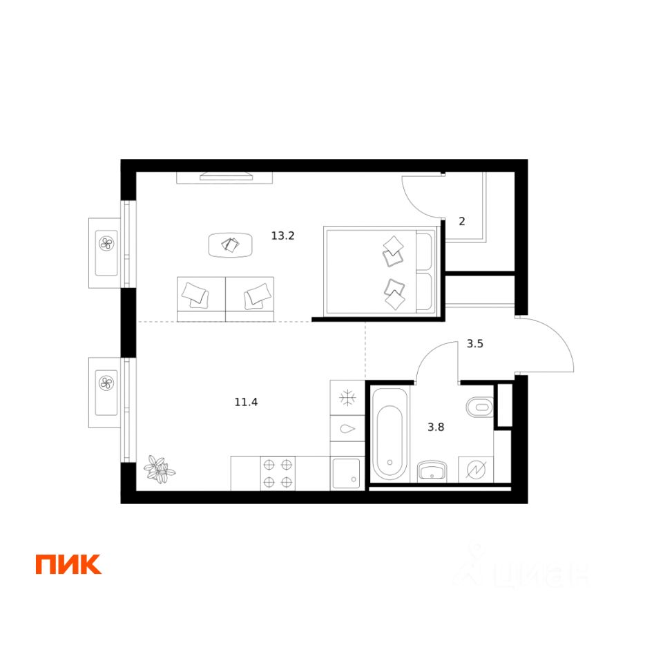34 м² · Этаж 13 из 24