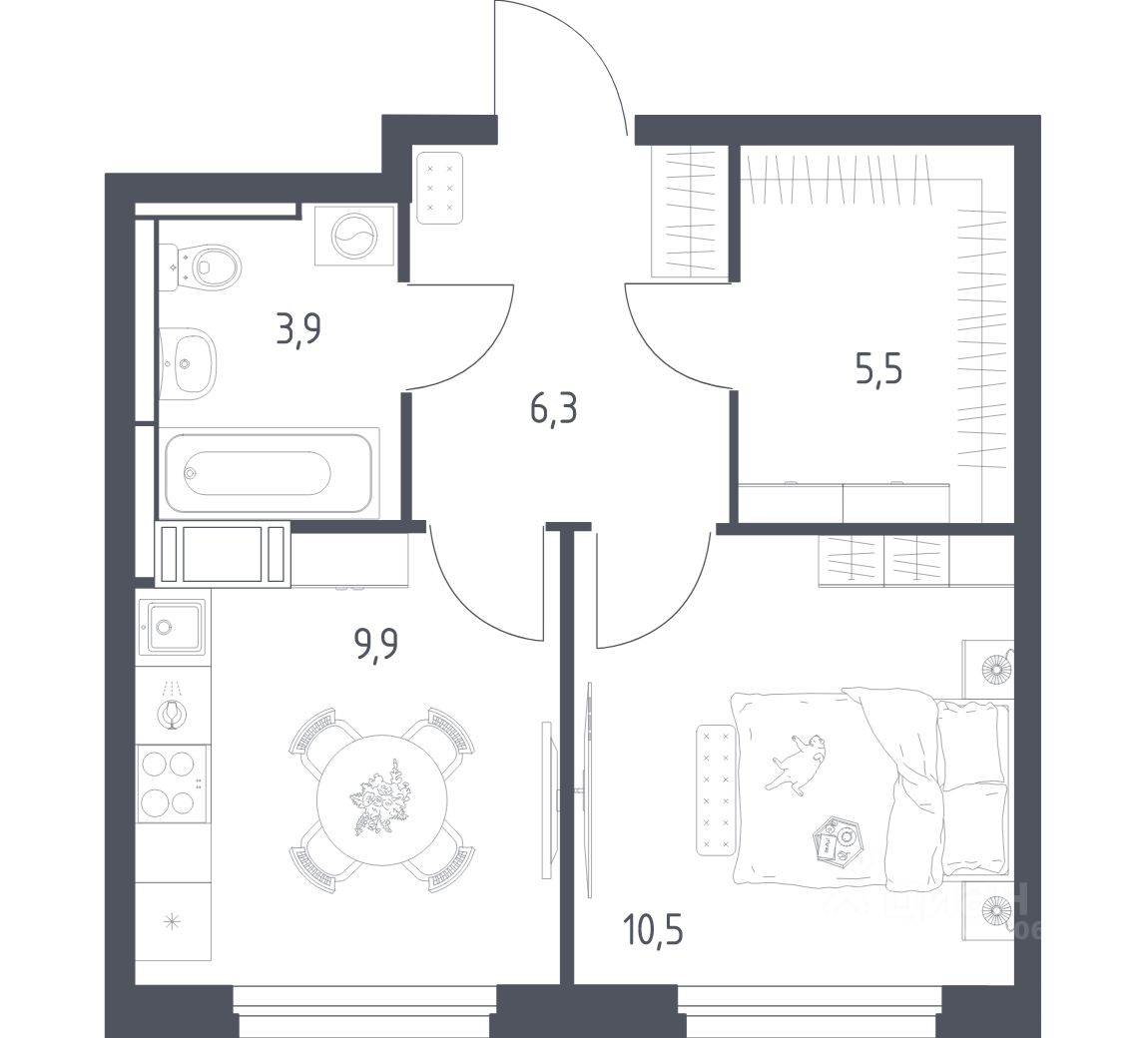 56 м² · Этаж 9 из 17