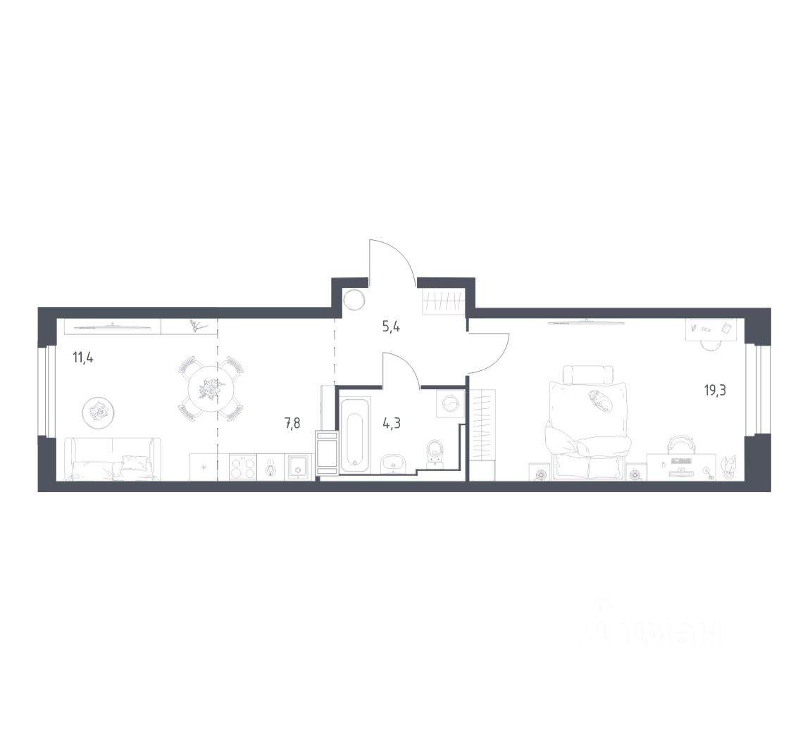 54 м² · Этаж 12 из 17