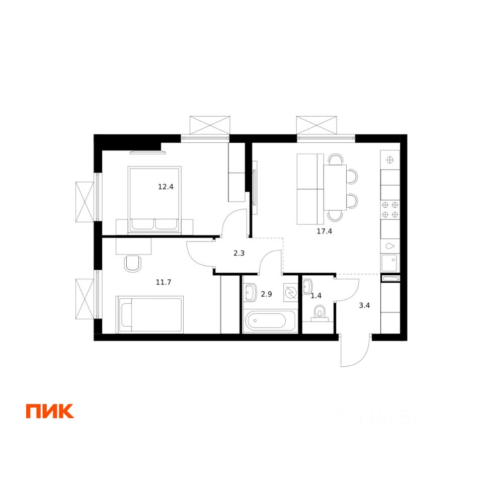 51 м² · Этаж 12 из 24