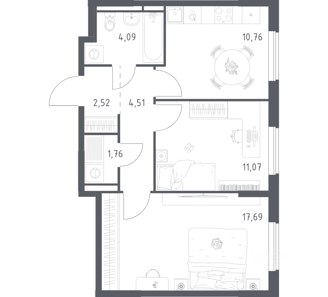 Номер в базе: 11821898. Продается просторная однокомнатная квартира-студия на 19 этаже современного жилого комплекса. Ключевым преимуществом объекта являются впечатляющие виды. Пространство общей площадью 43 кв. м грамотно зонировано с помощью дизайнерских решений: продуманное освещение, цветовые акценты и расстановка мебели создают четкое разделение на кухонную, рабочую и спальную зоны без использования перегородок. В квартире выполнен качественный ремонт с использованием современных материалов, установлены надежные стеклопакеты и эффективная система отопления, гарантирующая комфортный микроклимат в любое время года. Объект находится в собственности, полностью свободен от любых обременений и готов к сделке. Расположение комплекса характеризуется развитой инфраструктурой: во дворе расположен детский сад, в шаговой доступности находятся супермаркеты и объекты повседневного спроса. Пешая доступность до станции метро ''Строитель'' составляет 16 минут, а планируемый запуск линии МЦД-5 в ближайшей перспективе значительно улучшит транспортную связность района с ключевыми деловыми и культурными центрами города. Это оптимальное предложение для инвестиции или для комфортного проживания с ощущением простора и света. Код пользователя: 187511