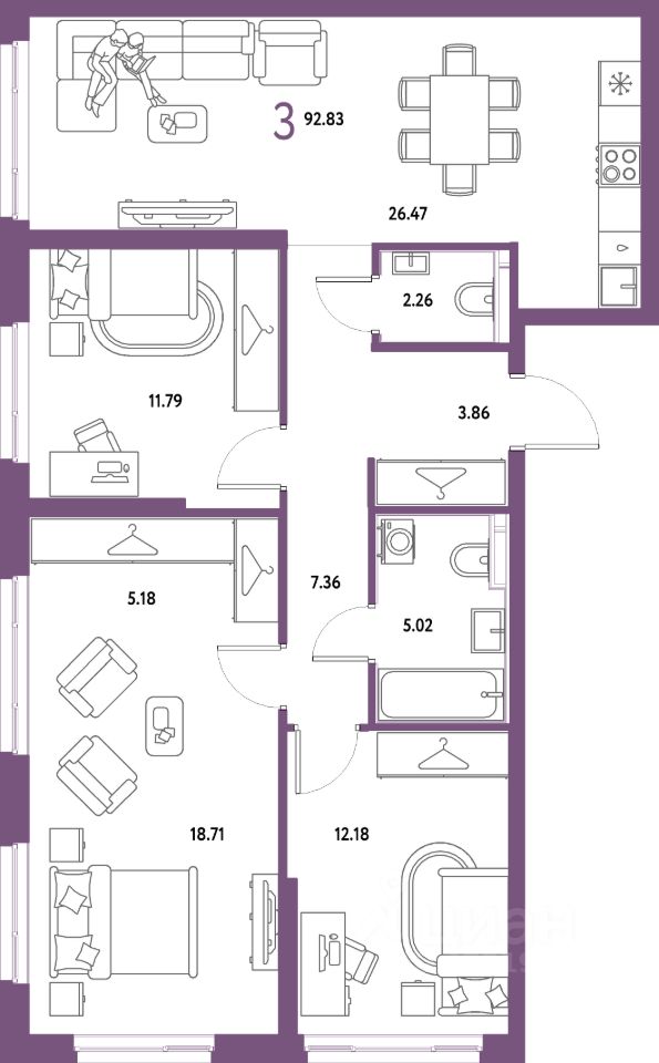 Продаётся 3-комнатная квартира в строящемся доме (Дом Васнецов), срок сдачи: IV-кв. 2027, общей площадью 92.83 кв.м., на 20 этаже. Многоэтажные жилые дома с объектами инфраструктуры, расположенные по адресу: Московская область, г.о. Мытищи, г.Мытищи, мкр. 18Б, ул. Комарова.