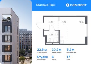Предлагается квартира студия комфорт-класса 22,27 кв.м в корпусе 5 на 14 этаже, в ЖК ''Мытищи Парк''Квартира без отделки. Доступность опции ''отделка'' и возможность комплектации мебелью и декором уточняйте у застройщика.Планировкой предусмотрены:СУ_1 - 3,12 м²Прихожая - 3,92 м²Кухня-ниша - 2,91 м²Студия - 12,32 м²Приобрести квартиру возможно по специальным акциям от застройщика, с текущими условиями акций можно ознакомиться в блоке Акций.Цена динамическая и может отличаться, уточняйте актуальность у застройщика.ЖК ''Мытищи Парк'' — это надежные и долговечные монолитные корпуса. При проектировании домов и территории застройщик учел потребности жильцов всех возрастов — молодых пар, семей с детьми и пожилых людей.ЖК ''Мытищи Парк'' расположен в Московской области и с двух сторон окружен Пироговским лесопарком.