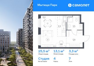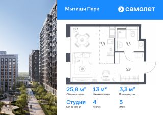 Предлагается квартира студия комфорт-класса 21,4 кв.м в корпусе 4 на 5 этаже, в ЖК ''Мытищи Парк''Квартира с чистовой отделкой. Доступность дополнительных опций уточняйте у застройщика.Приобрести квартиру возможно по специальным акциям от застройщика, с текущими условиями акций можно ознакомиться в блоке Акций.Цена динамическая и может отличаться, уточняйте актуальность у застройщика.ЖК ''Мытищи Парк'' — это надежные и долговечные монолитные корпуса. При проектировании домов и территории застройщик учел потребности жильцов всех возрастов — молодых пар, семей с детьми и пожилых людей.ЖК ''Мытищи Парк'' расположен в Московской области и с двух сторон окружен Пироговским лесопарком.