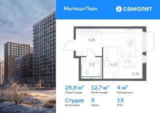 Дом сдан. Выдаем ключи!Продаётся студия 20.14 кв.м. с чистовой отделкой в ЖК ''КИТ'' на 6-м этаже 25 этажного дома.Жилой комплекс ''Кит'' спроектирован в урбанистической концепции ''Город в Городе''. Объект бизнес-класса предлагает рациональный подход к набору опций, необходимых для гармоничной жизни. Проект представляет собой два корпуса, которые образуют единую приватную территорию. Ее доминантой является двор с красивым ландшафтным дизайном и различными зонами, ориентированными на интересы жителей разного возраста. При создании пространства в приоритет ставился комфорт жителей. В шаговой доступности находятся торговый центр, рестораны, кинотеатры, спортивный зал, образовательные учреждения и много других сфер услуг. Преимущества проекта: - Видовые характеристики (просматриваются Москва - Сити и Останкинская телебашня) - Широкая квартирография по всем типам квартир- Увеличенное остекление - 3 варианта отделки: без отделки, white box или чистовая отделка в скандинавском и итальянском стилях - Школа и детский сад рядом - Богатая развлекательная инфраструктура - Высокий уровень безопасности территории- Умный дом (возможность связаться с консьерж сервисом/ охраной 24/7, наличие системы оповещения эвакуации, возможность вызова лифта из квартиры) Расположение комплекса:- 5 минут пешком до ж/д ''Мытищи'' и автовокзала:- 19 минут до станции м. ''Комсомольская''- 30 минут до станции м. ''Медведково''- 2,2 км до Волковского шоссе- 2,8 км до Ярославского шоссе- 5,7 км до МКАД