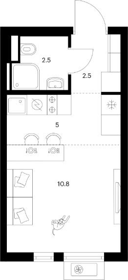 Объект забронирован клиентом!Продаётся студия в строящемся доме (Корпус 1.1), срок сдачи: III-кв. 2025, общей площадью 19.8 кв.м., на 5 этаже.