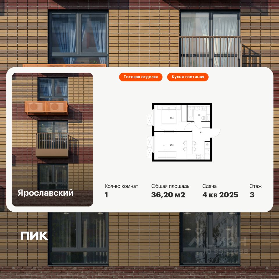 36 м² · Этаж 11 из 25