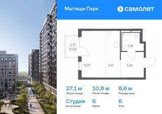Предлагается квартира студия комфорт-класса 27,13 кв.м в корпусе 6 на 6 этаже, в ЖК ''Мытищи Парк''Квартира с предчистовой отделкой. Доступность дополнительных опций уточняйте у застройщика.Планировкой предусмотрены:Прихожая - 5,66 м²Кухня-ниша - 6,61 м²Студия - 10,81 м²СУ_1 - 3,36 м²Балкон_1 - 0,69 м²Приобрести квартиру возможно по специальным акциям от застройщика, с текущими условиями акций можно ознакомиться в блоке Акций.Цена динамическая и может отличаться, уточняйте актуальность у застройщика.ЖК ''Мытищи Парк'' — это надежные и долговечные монолитные корпуса. При проектировании домов и территории застройщик учел потребности жильцов всех возрастов — молодых пар, семей с детьми и пожилых людей.ЖК ''Мытищи Парк'' расположен в Московской области и с двух сторон окружен Пироговским лесопарком.