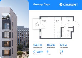Предлагается квартира студия комфорт-класса 27,13 кв.м в корпусе 6 на 4 этаже, в ЖК ''Мытищи Парк''Квартира без отделки. Доступность опции ''отделка'' и возможность комплектации мебелью и декором уточняйте у застройщика.Приобрести квартиру возможно по специальным акциям от застройщика, с текущими условиями акций можно ознакомиться в блоке Акций.Цена динамическая и может отличаться, уточняйте актуальность у застройщика.ЖК ''Мытищи Парк'' — это надежные и долговечные монолитные корпуса. При проектировании домов и территории застройщик учел потребности жильцов всех возрастов — молодых пар, семей с детьми и пожилых людей.ЖК ''Мытищи Парк'' расположен в Московской области и с двух сторон окружен Пироговским лесопарком.