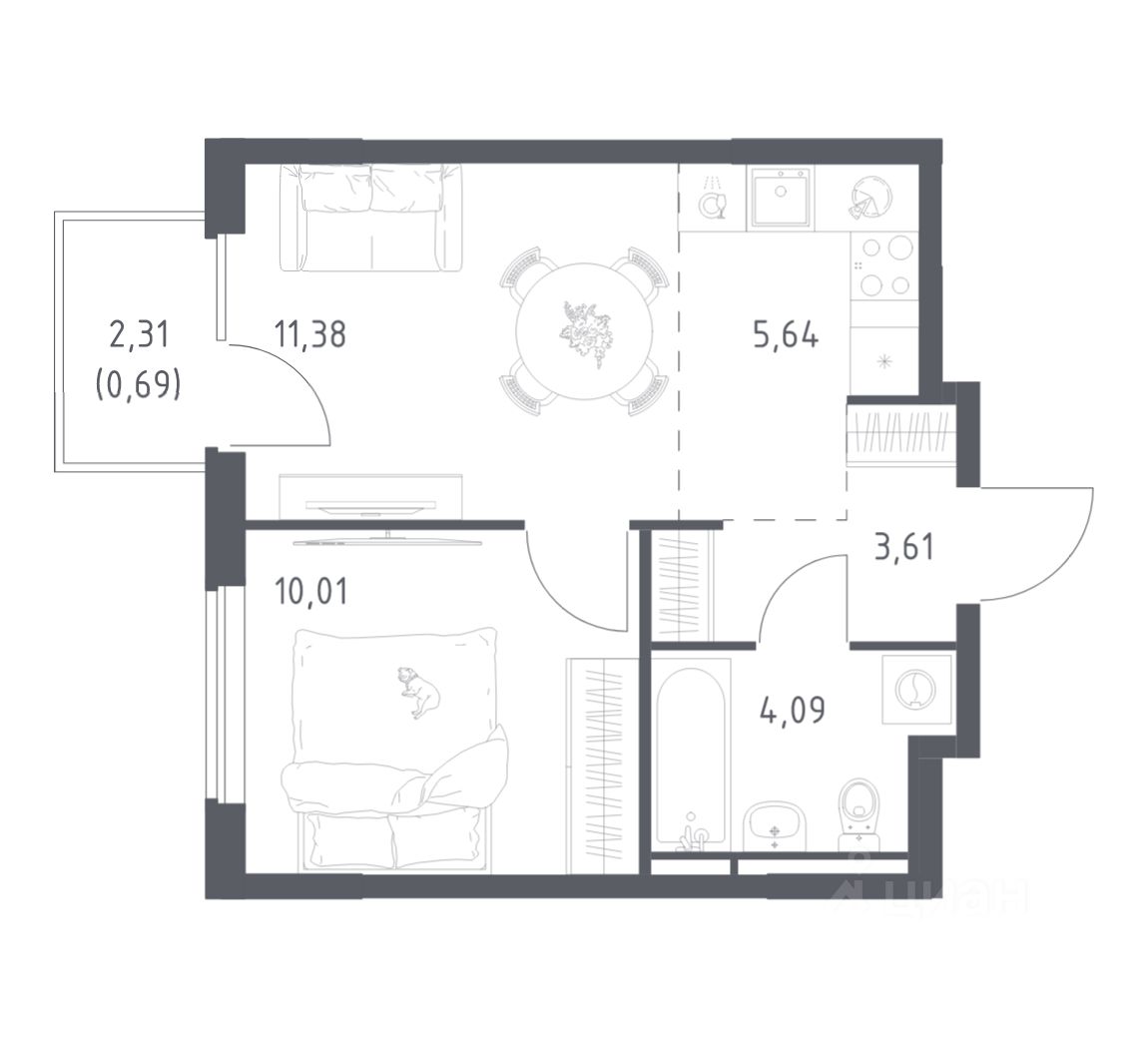 34 м² · Этаж 7 из 17