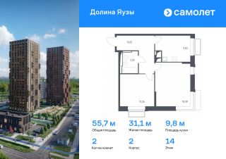 Предлагается 2-комнатная квартира комфорт-класса 55,71 кв.м в корпусе 2 на 14 этаже, в ЖК ''Долина Яузы''Квартира с чистовой отделкой. Доступность дополнительных опций уточняйте у застройщика.Приобрести квартиру возможно по специальным акциям от застройщика, с текущими условиями акций можно ознакомиться в блоке Акций.Цена динамическая и может отличаться, уточняйте актуальность у застройщика.Жилой комплекс комфорт-класса ''Долина Яузы'' расположен на северо-востоке Московской области, в 200 м от МКАД. До ж/д станции Перловская или набережной реки Яуза можно дойти за 10 минут. В шаговой доступности находятся детские сады, школы, стоматология и поликлиника. Есть супермаркеты и кофейни, детские и спортивные площадки, зоны отдыха под навесом. У каждого дома будет собственный двор-сад, где посадят плодовые и вечнозеленые деревья и кустарники. Территория около жилого комплекса закрыта от машин и посторонних и круглосуточно охраняется. В жилом комплексе ''Долина Яузы'' большой выбор квартир: от однокомнатных до трехкомнатных. Квартиры сдаются с готовой отделкой или без нее.