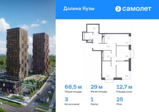 Предлагается 3-комнатная квартира комфорт-класса 68,48 кв.м в корпусе 1 на 25 этаже, в ЖК ''Долина Яузы''Квартира с чистовой отделкой. Доступность дополнительных опций уточняйте у застройщика.Приобрести квартиру возможно по специальным акциям от застройщика, с текущими условиями акций можно ознакомиться в блоке Акций.Цена динамическая и может отличаться, уточняйте актуальность у застройщика.Жилой комплекс комфорт-класса ''Долина Яузы'' расположен на северо-востоке Московской области, в 200 м от МКАД. До ж/д станции Перловская или набережной реки Яуза можно дойти за 10 минут. В шаговой доступности находятся детские сады, школы, стоматология и поликлиника. Есть супермаркеты и кофейни, детские и спортивные площадки, зоны отдыха под навесом. У каждого дома будет собственный двор-сад, где посадят плодовые и вечнозеленые деревья и кустарники. Территория около жилого комплекса закрыта от машин и посторонних и круглосуточно охраняется. В жилом комплексе ''Долина Яузы'' большой выбор квартир: от однокомнатных до трехкомнатных. Квартиры сдаются с готовой отделкой или без нее.