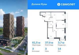 Предлагается 3-комнатная квартира комфорт-класса 61,49 кв.м в корпусе 3 на 14 этаже, в ЖК ''Долина Яузы''Квартира с чистовой отделкой. Доступность дополнительных опций уточняйте у застройщика.Приобрести квартиру возможно по специальным акциям от застройщика, с текущими условиями акций можно ознакомиться в блоке Акций.Цена динамическая и может отличаться, уточняйте актуальность у застройщика.Жилой комплекс комфорт-класса ''Долина Яузы'' расположен на северо-востоке Московской области, в 200 м от МКАД. До ж/д станции Перловская или набережной реки Яуза можно дойти за 10 минут. В шаговой доступности находятся детские сады, школы, стоматология и поликлиника. Есть супермаркеты и кофейни, детские и спортивные площадки, зоны отдыха под навесом. У каждого дома будет собственный двор-сад, где посадят плодовые и вечнозеленые деревья и кустарники. Территория около жилого комплекса закрыта от машин и посторонних и круглосуточно охраняется. В жилом комплексе ''Долина Яузы'' большой выбор квартир: от однокомнатных до трехкомнатных. Квартиры сдаются с готовой отделкой или без нее.