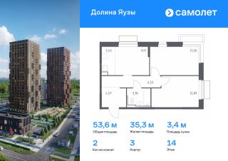 Предлагается 2-комнатная квартира комфорт-класса 53,62 кв.м в корпусе 3 на 14 этаже, в ЖК ''Долина Яузы''Квартира с чистовой отделкой. Доступность дополнительных опций уточняйте у застройщика.Приобрести квартиру возможно по специальным акциям от застройщика, с текущими условиями акций можно ознакомиться в блоке Акций.Цена динамическая и может отличаться, уточняйте актуальность у застройщика.Жилой комплекс комфорт-класса ''Долина Яузы'' расположен на северо-востоке Московской области, в 200 м от МКАД. До ж/д станции Перловская или набережной реки Яуза можно дойти за 10 минут. В шаговой доступности находятся детские сады, школы, стоматология и поликлиника. Есть супермаркеты и кофейни, детские и спортивные площадки, зоны отдыха под навесом. У каждого дома будет собственный двор-сад, где посадят плодовые и вечнозеленые деревья и кустарники. Территория около жилого комплекса закрыта от машин и посторонних и круглосуточно охраняется. В жилом комплексе ''Долина Яузы'' большой выбор квартир: от однокомнатных до трехкомнатных. Квартиры сдаются с готовой отделкой или без нее.