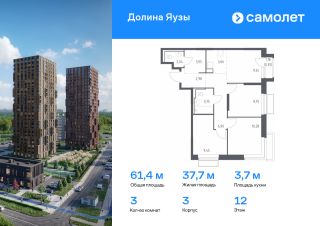 Предлагается 3-комнатная квартира комфорт-класса 61,35 кв.м в корпусе 3 на 12 этаже, в ЖК ''Долина Яузы''Квартира с чистовой отделкой. Доступность дополнительных опций уточняйте у застройщика.Приобрести квартиру возможно по специальным акциям от застройщика, с текущими условиями акций можно ознакомиться в блоке Акций.Цена динамическая и может отличаться, уточняйте актуальность у застройщика.Жилой комплекс комфорт-класса ''Долина Яузы'' расположен на северо-востоке Московской области, в 200 м от МКАД. До ж/д станции Перловская или набережной реки Яуза можно дойти за 10 минут. В шаговой доступности находятся детские сады, школы, стоматология и поликлиника. Есть супермаркеты и кофейни, детские и спортивные площадки, зоны отдыха под навесом. У каждого дома будет собственный двор-сад, где посадят плодовые и вечнозеленые деревья и кустарники. Территория около жилого комплекса закрыта от машин и посторонних и круглосуточно охраняется. В жилом комплексе ''Долина Яузы'' большой выбор квартир: от однокомнатных до трехкомнатных. Квартиры сдаются с готовой отделкой или без нее.