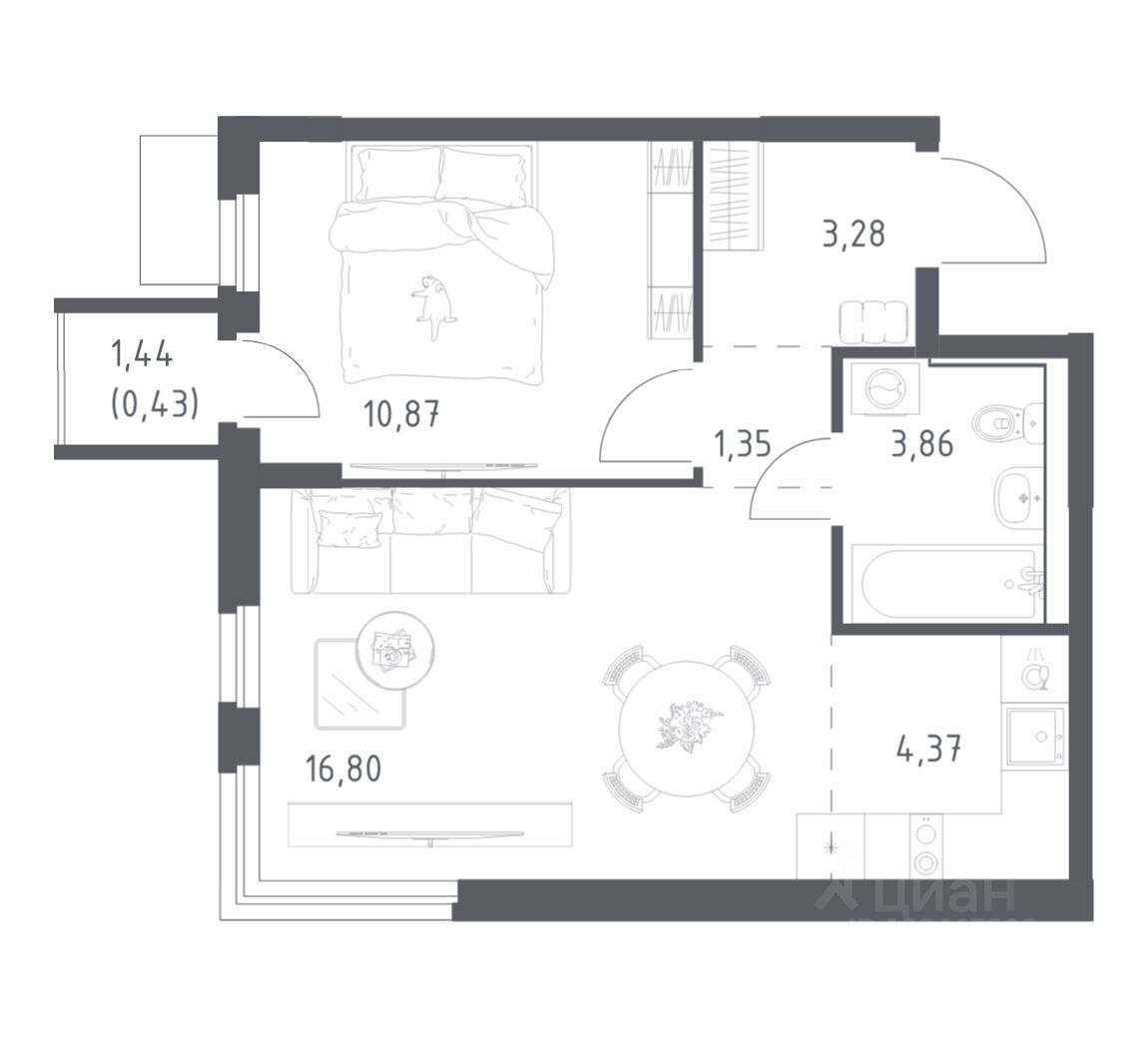 43 м² · Этаж 17 из 24