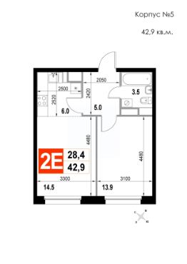 Продаётся 2-комнатная квартира в строящемся доме (Корпус 5), срок сдачи: II-кв. 2026, общей площадью 42.9 кв.м., на 10 этаже. Многоквартирный жилой дом со встроенно-пристроенными нежилыми помещениями и автостоянкой