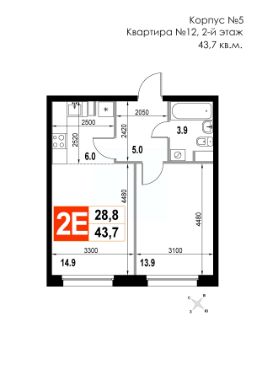Продаётся 2-комнатная квартира в строящемся доме (Корпус 5), срок сдачи: II-кв. 2026, общей площадью 42.9 кв.м., на 8 этаже. Многоквартирный жилой дом со встроенно-пристроенными нежилыми помещениями и автостоянкой