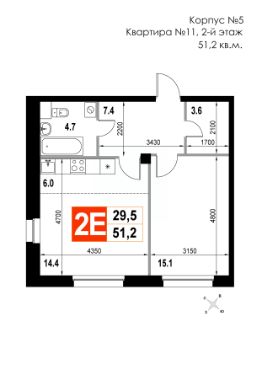 Продаётся 2-комнатная квартира в строящемся доме (Корпус 5), срок сдачи: II-кв. 2026, общей площадью 51.2 кв.м., на 2 этаже. Многоквартирный жилой дом со встроенно-пристроенными нежилыми помещениями и автостоянкой