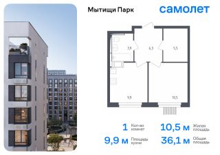 Предлагается 1-комнатная квартира комфорт-класса 36,1 кв.м в корпусе 4.2 на 5 этаже, в ЖК ''Мытищи Парк''Квартира с чистовой отделкой. Доступность дополнительных опций уточняйте у застройщика.Планировкой предусмотрены:Жилая_комната_1 - 10,5 м²Кухня_1 - 9,9 м²Прихожая_1 - 6,3 м²Гардеробная_1 - 5,5 м²СУ_1 - 3,9 м²Приобрести квартиру возможно по специальным акциям от застройщика, с текущими условиями акций можно ознакомиться в блоке Акций.Цена динамическая и может отличаться, уточняйте актуальность у застройщика.ЖК ''Мытищи Парк'' — это надежные и долговечные монолитные корпуса. При проектировании домов и территории застройщик учел потребности жильцов всех возрастов — молодых пар, семей с детьми и пожилых людей.ЖК ''Мытищи Парк'' расположен в Московской области и с двух сторон окружен Пироговским лесопарком.