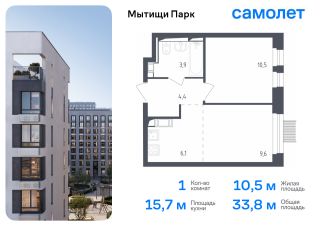 Предлагается 1-комнатная квартира комфорт-класса 33,8 кв.м в корпусе 4 на 3 этаже, в ЖК ''Мытищи Парк''Квартира с чистовой отделкой. Доступность дополнительных опций уточняйте у застройщика.Планировкой предусмотрены:Жилая_комната_2 - 10,5 м²Жилая_комната_1 - 9,6 м²Кухня-ниша_1 - 6,1 м²Прихожая_1 - 4,4 м²СУ_1 - 3,9 м²Приобрести квартиру возможно по специальным акциям от застройщика, с текущими условиями акций можно ознакомиться в блоке Акций.Цена динамическая и может отличаться, уточняйте актуальность у застройщика.ЖК ''Мытищи Парк'' — это надежные и долговечные монолитные корпуса. При проектировании домов и территории застройщик учел потребности жильцов всех возрастов — молодых пар, семей с детьми и пожилых людей.ЖК ''Мытищи Парк'' расположен в Московской области и с двух сторон окружен Пироговским лесопарком.