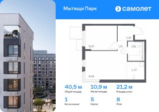 Предлагается 1-комнатная квартира комфорт-класса 40,53 кв.м в корпусе 5 на 8 этаже, в ЖК ''Мытищи Парк''Квартира с чистовой отделкой. Доступность дополнительных опций уточняйте у застройщика.Приобрести квартиру возможно по специальным акциям от застройщика, с текущими условиями акций можно ознакомиться в блоке Акций.Цена динамическая и может отличаться, уточняйте актуальность у застройщика.ЖК ''Мытищи Парк'' — это надежные и долговечные монолитные корпуса. При проектировании домов и территории застройщик учел потребности жильцов всех возрастов — молодых пар, семей с детьми и пожилых людей.ЖК ''Мытищи Парк'' расположен в Московской области и с двух сторон окружен Пироговским лесопарком.