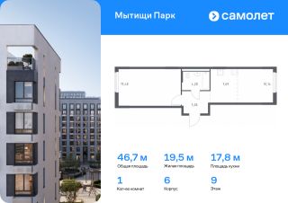 Предлагается 1-комнатная квартира комфорт-класса 46,65 кв.м в корпусе 6 на 9 этаже, в ЖК ''Мытищи Парк''Квартира без отделки. Доступность опции ''отделка'' и возможность комплектации мебелью и декором уточняйте у застройщика.Приобрести квартиру возможно по специальным акциям от застройщика, с текущими условиями акций можно ознакомиться в блоке Акций.Цена динамическая и может отличаться, уточняйте актуальность у застройщика.ЖК ''Мытищи Парк'' — это надежные и долговечные монолитные корпуса. При проектировании домов и территории застройщик учел потребности жильцов всех возрастов — молодых пар, семей с детьми и пожилых людей.ЖК ''Мытищи Парк'' расположен в Московской области и с двух сторон окружен Пироговским лесопарком.