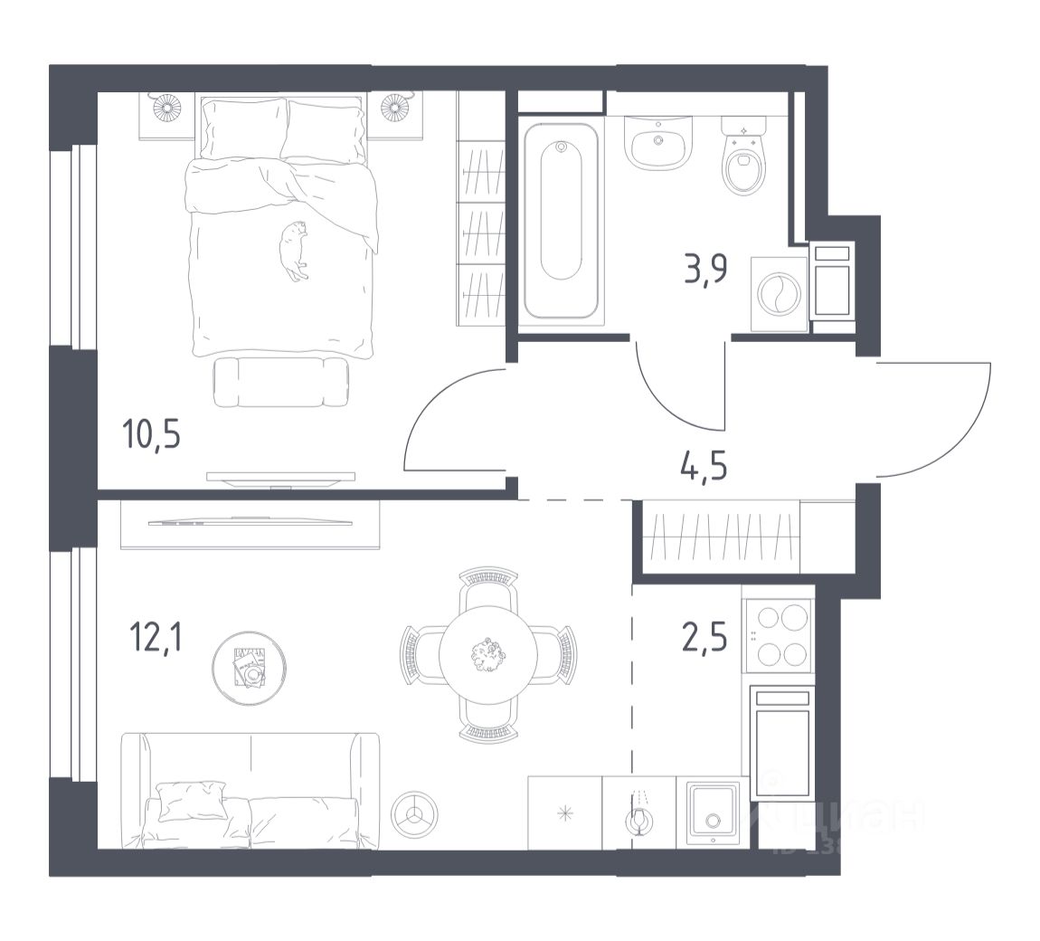 В продаже 1-комнатная квартира в корпусе 4 ЖК 'Мытищи Парк'. Квартира располагается на 7 этаже, общая площадь 42.8 м2.