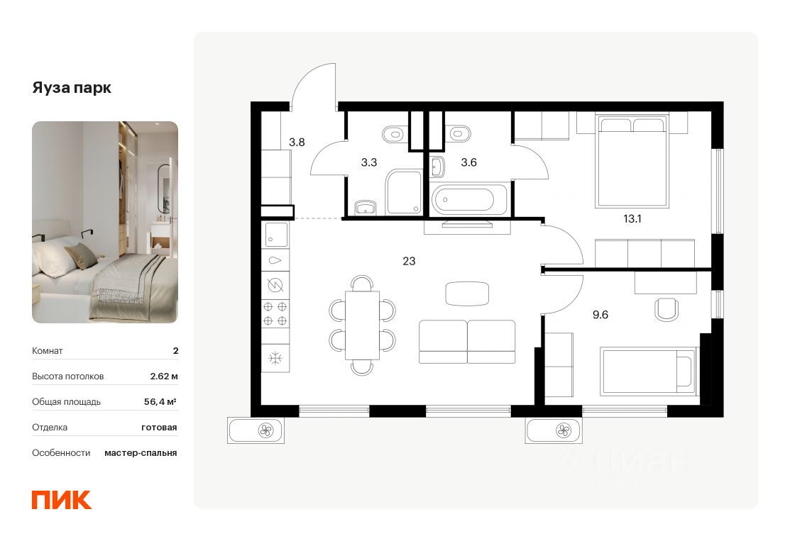 34 м² · Этаж 23 из 24