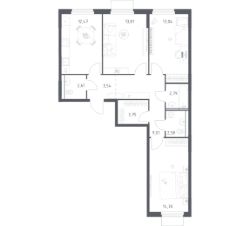 В продаже 1-комнатная квартира в корпусе 5 ЖК 'Мытищи Парк'. Квартира располагается на 3 этаже, общая площадь 34.61 м2.