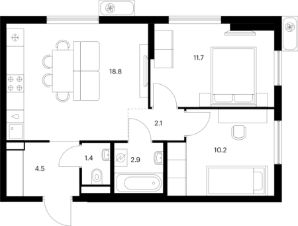 • Минимальная площадь: 19 м²
